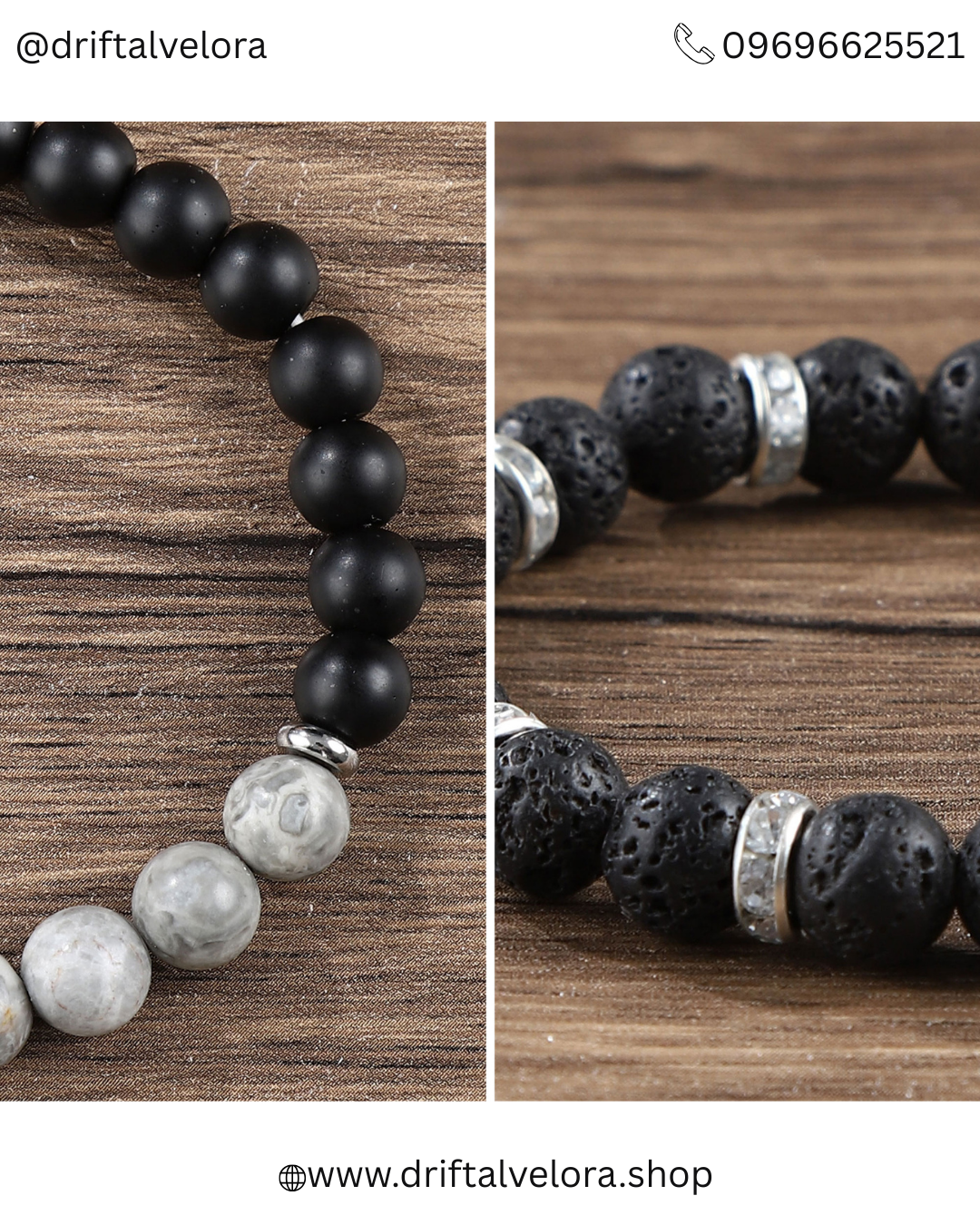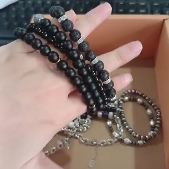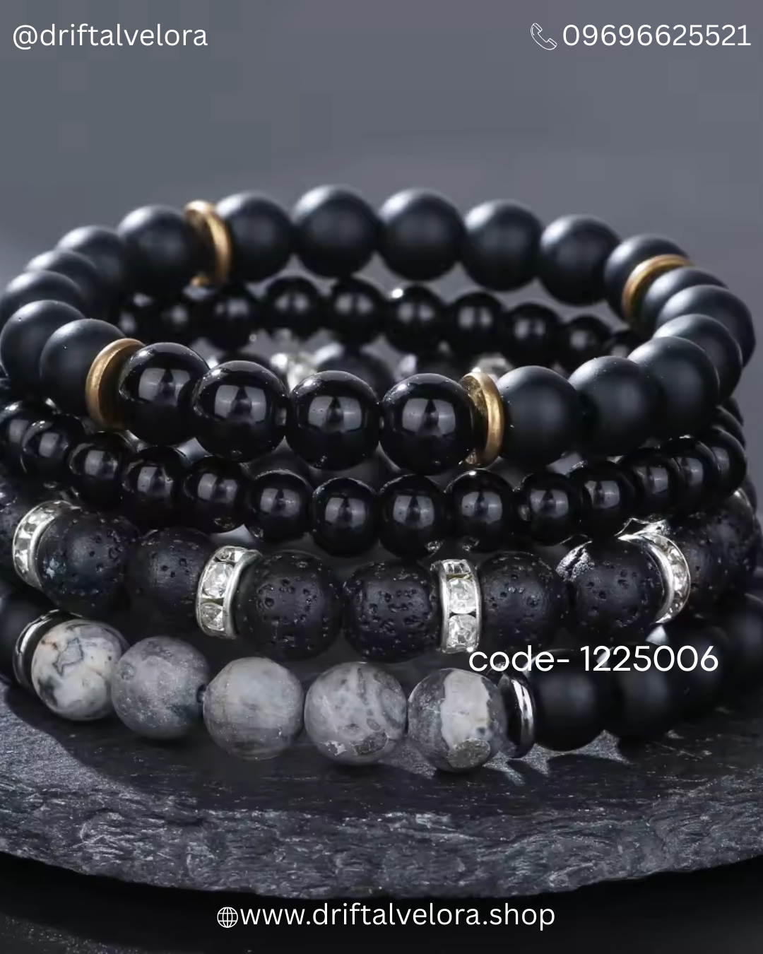 Explore your wrist game with this stunning handcrafted bracelet stack from Driftal Velora. Featuring a mix of natural Lava stones, polished Onyx, and Grey Map stones, this set offers a perfect balance of texture and style.