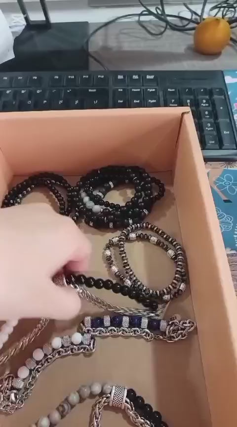 • Dual-Strand Design: One strand features a heavy-duty, polished stainless steel wheat chain, while the parallel strand is composed of high-quality natural stone beads.